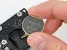 Lift the edge of the PRAM battery slightly with your fingertip and use a spudger to slide the PRAM battery out from under its socket's metal clip.