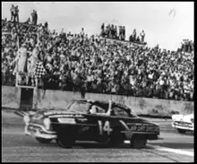 Seven cautions were waved for forty laps in front of 32,400 audience members.[2] The race's speed was 74.512 miles per hour (119.915 km/h) and 88.550 miles per hour (142.507 km/h) as the pole position speed.[2] This race was constantly threatened to be postponed because of rain and was red flagged once because of actual rainfall.[4] It took six hours, forty-two minutes, and thirty-seven seconds for the race to reach its conclusion, making it the longest Southern 500 ever; Fonty Flock was the winner.[2] He would stop on the front straight, climb up on his hood and lead the entire crowd in singing his own version of the classic Southern American song Dixie.[4]
