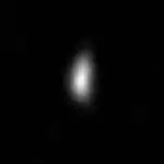 Prior to the New Horizons flyby of Arrokoth, stellar occultations by Arrokoth had provided evidence for its bilobate shape.[45] The first detailed image of Arrokoth confirmed its double-lobed appearance and was described as a "snowman" by Alan Stern, as the lobi appeared distinctively spherical.[46] On 8 February 2019, one month after the New Horizons flyby, Arrokoth was found to be more flattened than initially thought, based on additional images of Arrokoth taken by New Horizons after its closest approach. The flattened lobus Wenu was described as a "pancake", while Weeyo was described as a "walnut" as it appeared less flattened. By observing how the unseen sections of Arrokoth occulted background stars, scientists were able to then outline the shapes of both lobi.[47] The cause of Arrokoth's unexpectedly flattened shape is uncertain, with various explanations including sublimation or centrifugal forces.[48][49]