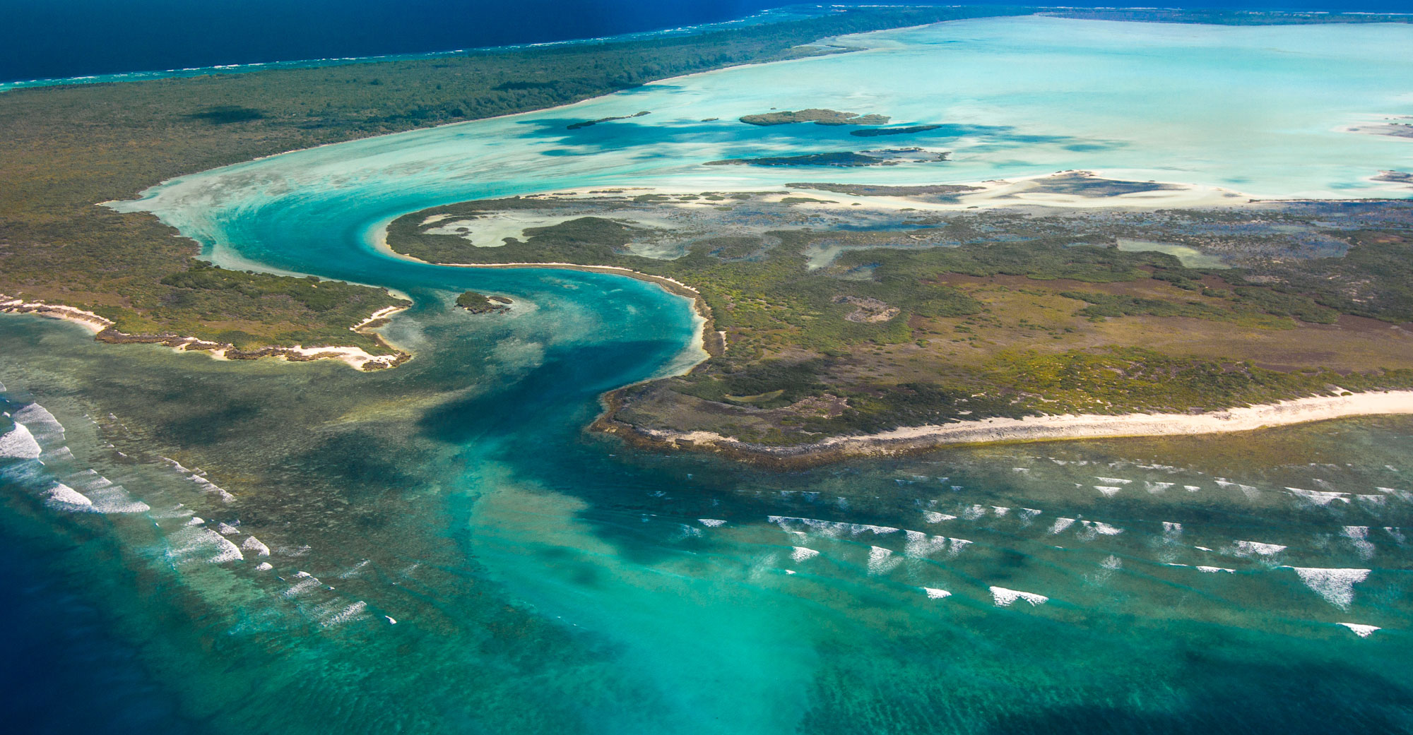 Astove atoll is located 35 kilometres (22 miles) SSE of Cosmoledo Atoll. It is a raised coral island of most peculiar form: a single stretch of land, that is 1.4 kilometres (0.9 miles) at the widest part, almost entirely encloses a shallow lagoon. The lagoon has a maximum depth of 3 metres (9.8 feet), and the only exit is a winding passage in the south, called Gueule Bras Channel. The lagoon includes some sandbanks and islands inside it.
