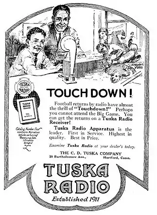 - ↑ "Remarkable Expansion of C. D. Tuska Business Due to Radio Popularity", Hartford Courant, June 5, 1922, page 10.