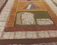 - ↑ As shown in the Ratinlinxul Cup, From Alta Verapaz, where there is a painting of a procession with a nobleman sit on top of several servants that are carrying him. Behind them there are five musicians, with instruments similar to trumpets. Also, a door frame in Temple I in Tikal has a sculpted scene in which a divine lord (K’ul Ahaw) is being carried on the shoulders of several people.