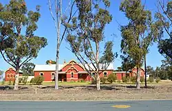 The Jerilderie railway station is a heritage-listed former railway station located on the now closed Tocumwal line at Nowranie Street, Jerilderie, in the Murrumbidgee Council local government area of New South Wales, Australia. The former station was designed by John Whitton and built from 1884 to 1885 by Charles Hardy. It is also known as Jerilderie Railway Station Group. The property was added to the New South Wales State Heritage Register on 17 April 2003.[1]