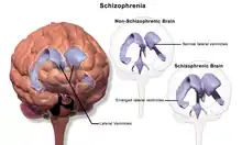 Comparison between a non-schizophrenic brain and a schizophrenic brain