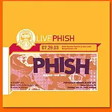 Live Phish 07.29.03 was recorded live at the Post-Gazette Pavilion at Star Lake in Burgettstown, Pennsylvania, a suburb of Pittsburgh, on July 29, 2003.