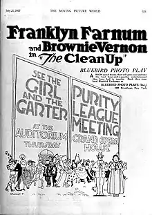 The Clean-Up is a 1917 American silent comedy Western film directed by William Worthington and starring Franklyn Farnum, Agnes Vernon and Mark Fenton.[1]