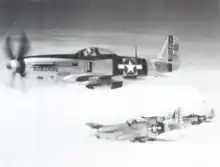In February 1945, he was promoted to lieutenant colonel and on the same month, the 348th FG transitioned from P-47s to P-51 Mustangs at San Marcelino. In June 1945, he was made commander of the 348th FG and the unit moved to airfield at Ie Shima in Okinawa, where they began flying long-range missions over the Japanese Home Islands. He remained in the command of the 348th FG in Ie Shima till November 1945.[3]