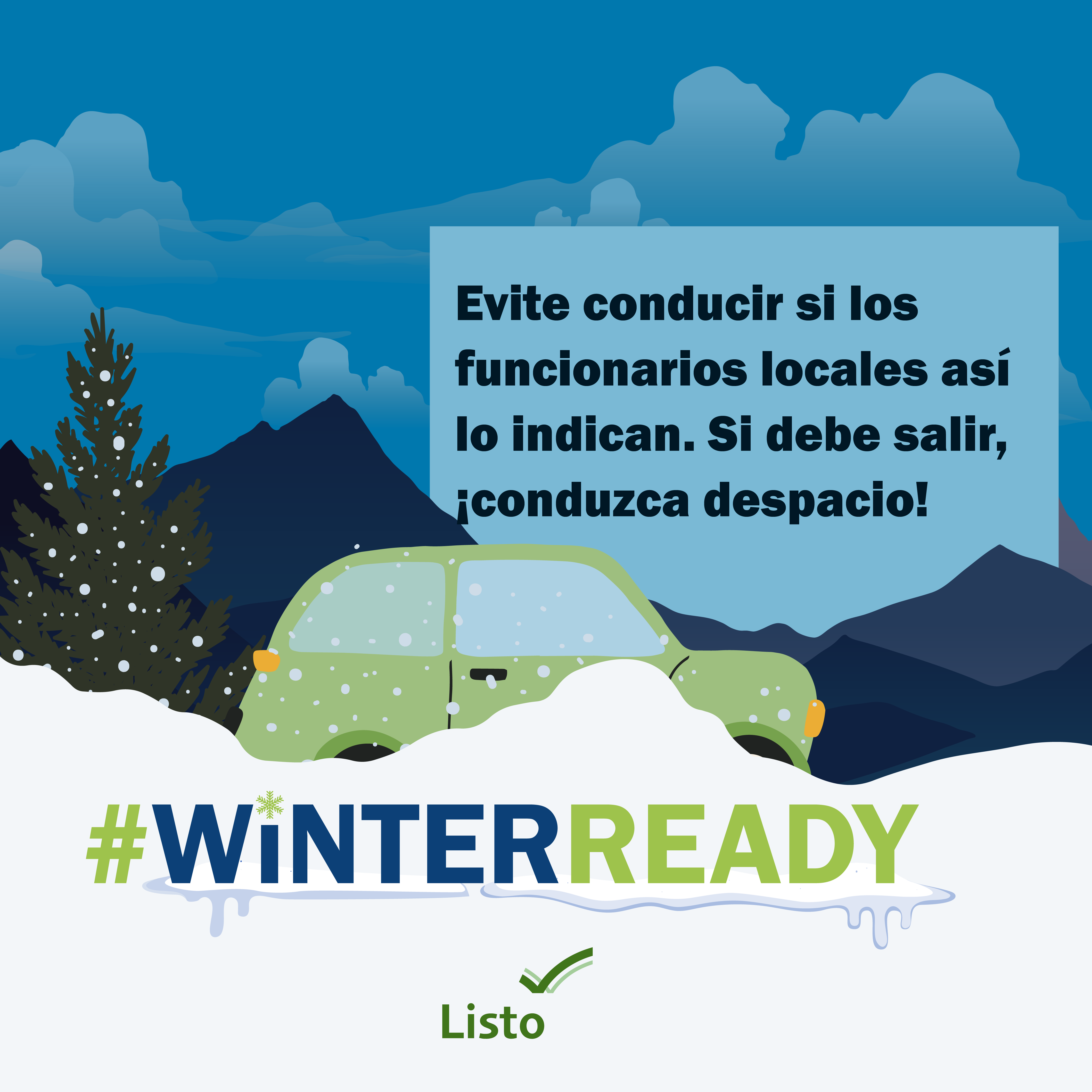 Evite conducir si los funcionarios locales así lo indican. Si debe salir, ¡conduzca despacio! #WinterReady